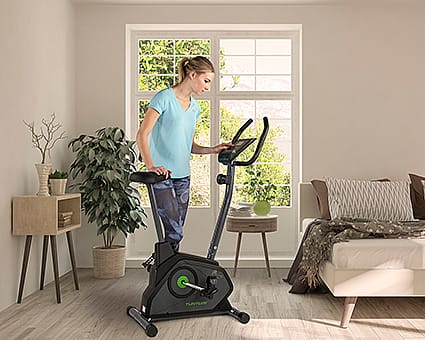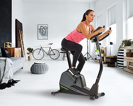 The nice thing about an exercise bike is that it’s ideal for getting started. Whether you are just beginning with exercise, are already experienced, or want to improve your fitness later in life, exercise bikes make it easy to train at your own level. Simply set the desired resistance, hop on, and even combine your training with watching your favorite series or movies, or use fitness apps like Kinomap to make your workouts even more dynamic.