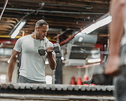 - Bicep Curls - 3 sets x 12 herhalingen