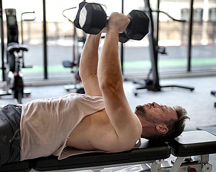 - Close-grip bench press - 3 sets x 12 herhalingen